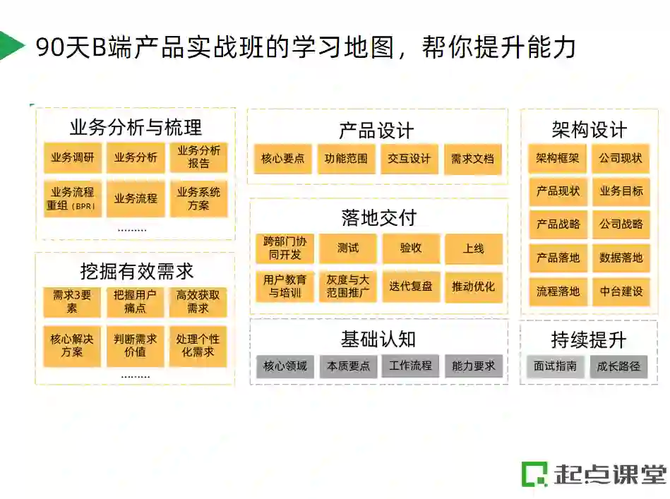 这门课是由起点学院联合业内资深B端产品专家共同研发,专为 1-3 岁B端产品人打造的一门能力提升课。