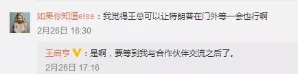 但显然王老板对这些冷嘲热讽并不在意,继续“秀”接到美国现任总统特朗普的邀请。