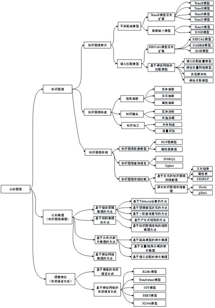 报告围绕认知图谱及其 3 个技术领域(知识图谱、认知推理、逻辑表达),从概念、发展历程、关键技术(如图 3 所示)、问题与挑战、未来研究方向等方面展开介绍,并进行了论文研究主题分析、经典论文解读,以及技术情报深入挖掘,旨在为读者了解认知图谱领域的基础和应用研究的代表性成果、以及研究动向和进展提供信息窗口。
