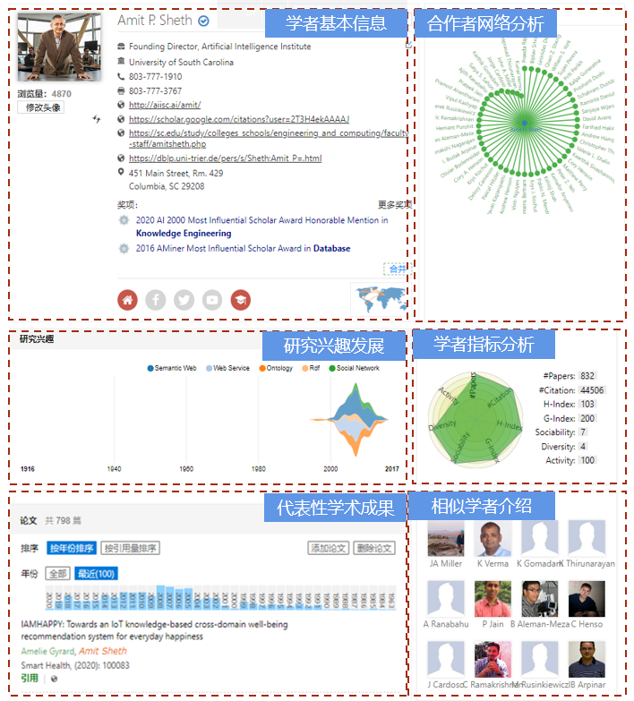 报告借助 AMiner 科技情报大数据挖掘与服务系统平台,不仅深入分析了认知图谱领域的技术研究发展趋势和创新热点,以及中国的专利数据和国家自然科学基金项目支持情况,还从学者分布地图、学术水平分析、国际合作分析、学者流动情况等维度,对比分析了中国和全球其他国家学者在该领域的发展状况,并给出了相应的对策建议,旨在为中国的学科布局和科技人才队伍建设提供数据支撑和指导。以下选取代表性的分析维度进行展示说明。