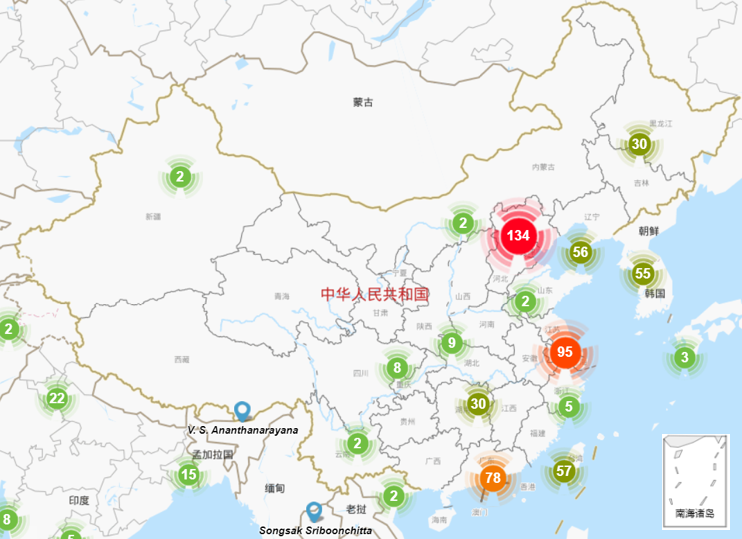 2009年—2020 年间,北京是学者流动性最高的城市。此外,北京、香港、上海、哈尔滨的学者流出数量高于流入数量,而武汉、南京、西安、杭州、广州、合肥的学者流入数量高于流出数量。
