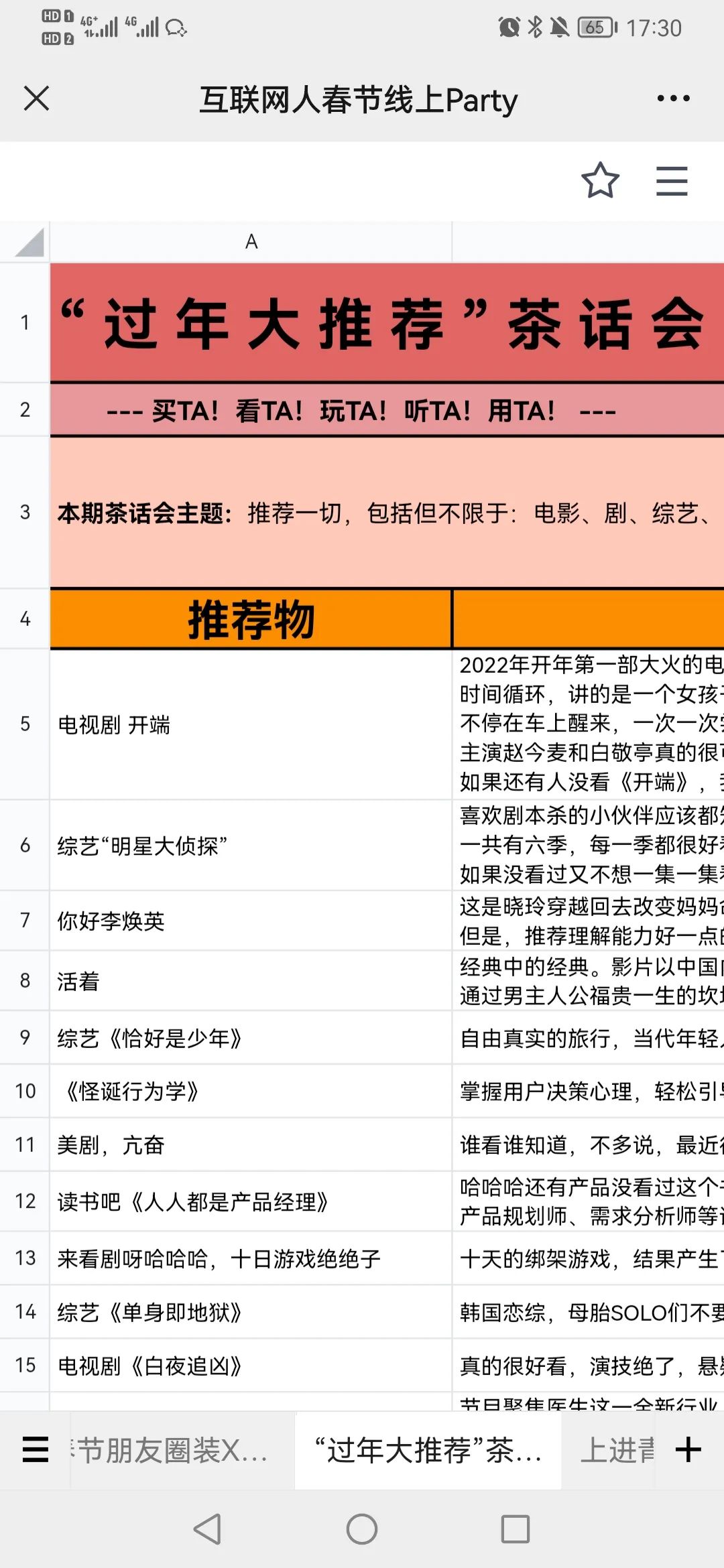 除了游戏,还有哪些综艺、音乐、书、电影等适合在假期N刷?来“过年大推荐茶话会”,给大家疯狂安利吧。