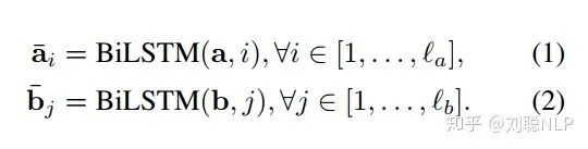 分别表示编码后的前提句和假设句,而这里的两个BiLSTM是权值共享的(权值共享的目的,见上一篇分享,这里不过多描述了)。