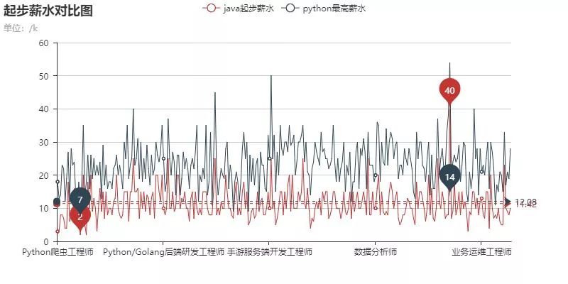 Python起步薪水大多数都比Java的高。Java平均起步薪水11.42K,Python平均起步薪水12.08K。
