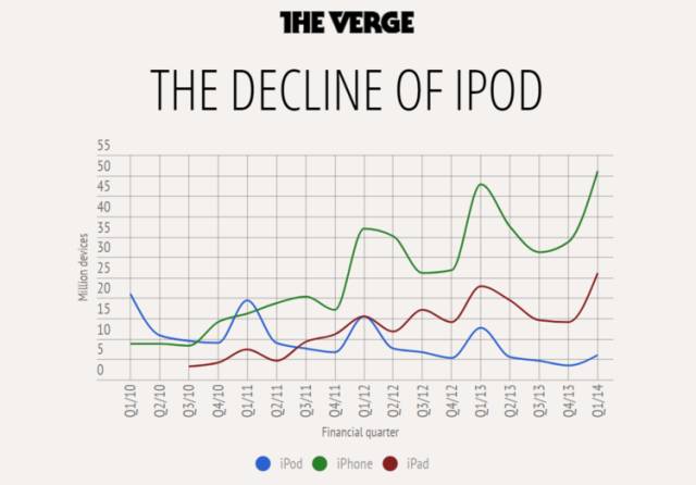 在营收和设备生态上,iPhone 也取代了 iPod 这一曾经的核心产品。从产品功能和对公司的财务价值上,iPod 都过时了——这是它们的产品线被苹果杀死的最主要原因。