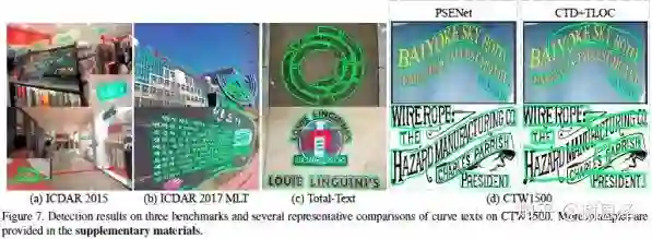 PSENet 在两个弯曲文字检测数据集上都取得了 SOTA 结果,并在多方向数据集上也取得了令人满意的结果。
