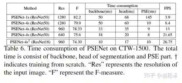 最重要的是,在压缩 backbone 和图片分辨率的情况下,PSENet 可以做到实时性检测,而检测结果同样具有竞争力,这是第一个在弯曲文字数据集上实现 >20FPS 的算法。