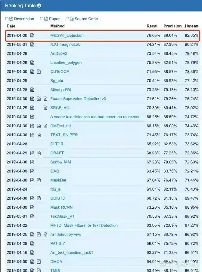 旷视检测组的几名实习生参加了本次比赛,这个部分主要分享一些旷视检测组在 ICDAR2019 ArT 比赛中获得冠军的一些经验。