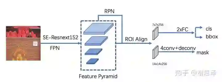 为什么要用 Mask R-CNN?首先,弯曲文字检测可以转化为一个实例分割问题,而 Mask R-CNN 是当前最优的实例分割框架,大多数 COCO Instance Segmentation 冠军队伍都采用Mask R-CNN 作为 Baseline。