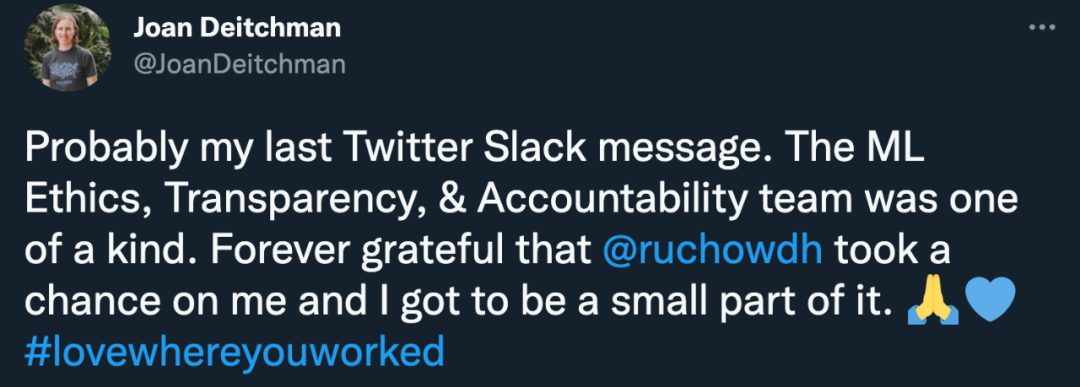 不久前,推特前高级工程经理 Joan Deitchman 透露,她所在算法团队已经被解散。