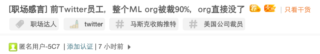 一位曾就职于推特的网友也发帖称,推特的机器学习团队裁撤了 90% 的员工。