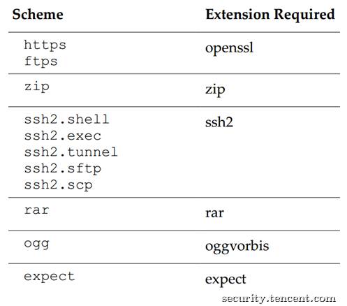 上图是默认支持协议,还可以支持其他,如PHP支持的扩展协议有