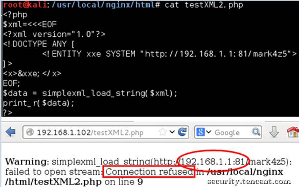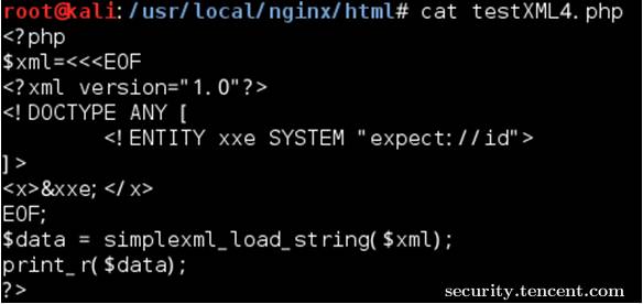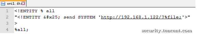 当允许引用外部实体时,通过构造恶意内容,可导致读取任意文件、执行系统命令、探测内网端口、攻击内网网站等危害。