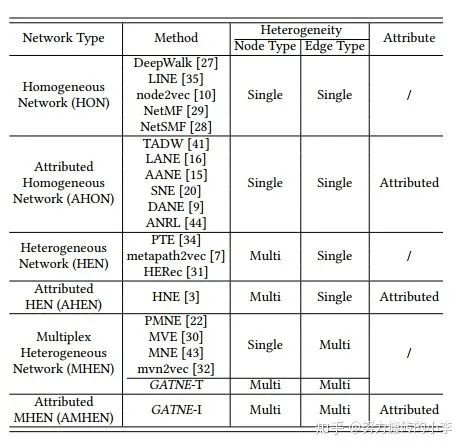 Heterogeneous:异构,节点和边有多种类型,节点类型+边类型>2