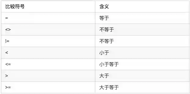 SQL WHERE 与比较符号