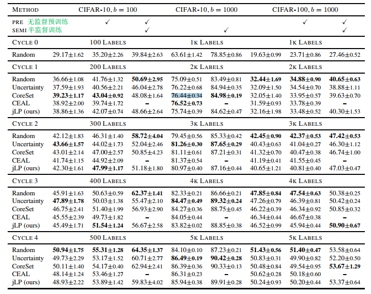 具体来说,在主动学习开始前,首先利用标记数据和未标记数据进行无监督预训练,在每个AL学习周期首先在标记数据集上进行监督训练,然后在所有数据集上进行半监督训练。这在训练方法上是一种新的尝试,并且作者发现与采样策略之间的差异相比,这种模型训练方式在性能提升上有着令人惊讶的提升。
