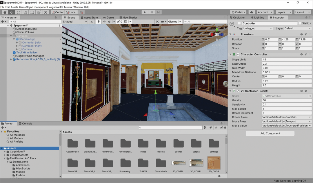 研究人员使用3D建模软件《3D Studio Max》、《Campanaro Reference Campanaro2021》对庞贝城的「希腊警句之屋」进行 3D 重建,并导入 Unity引擎。作为可用于虚拟现实体验的跨平台游戏引擎,Unity引擎的物理实境复现、光线模拟等功能是业界第一流的。