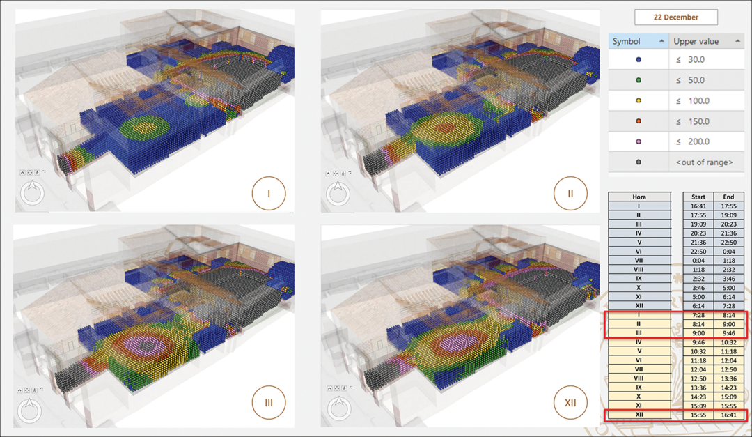 为了本研究的特定要求,研究者选择了两种截然不同的光照情景:冬至的黎明和夏至的中午。