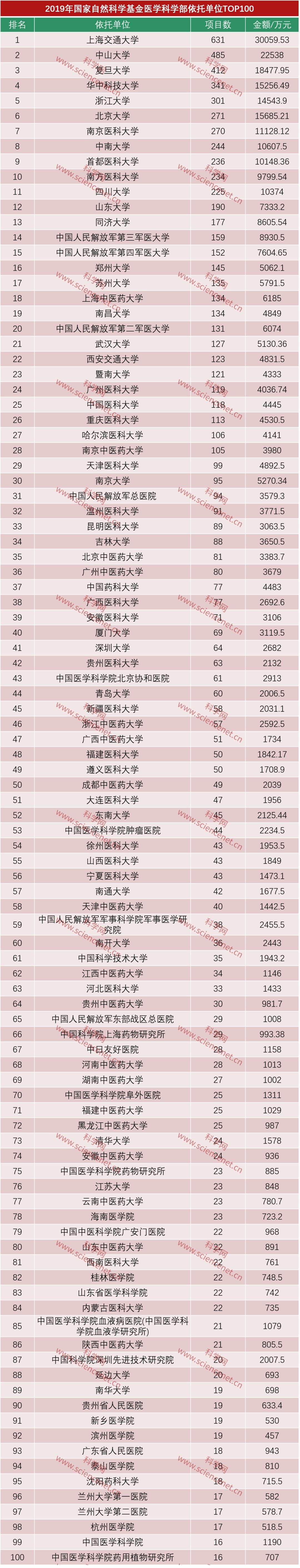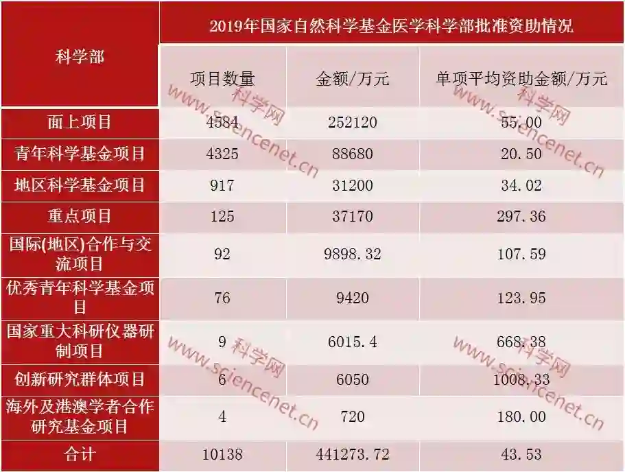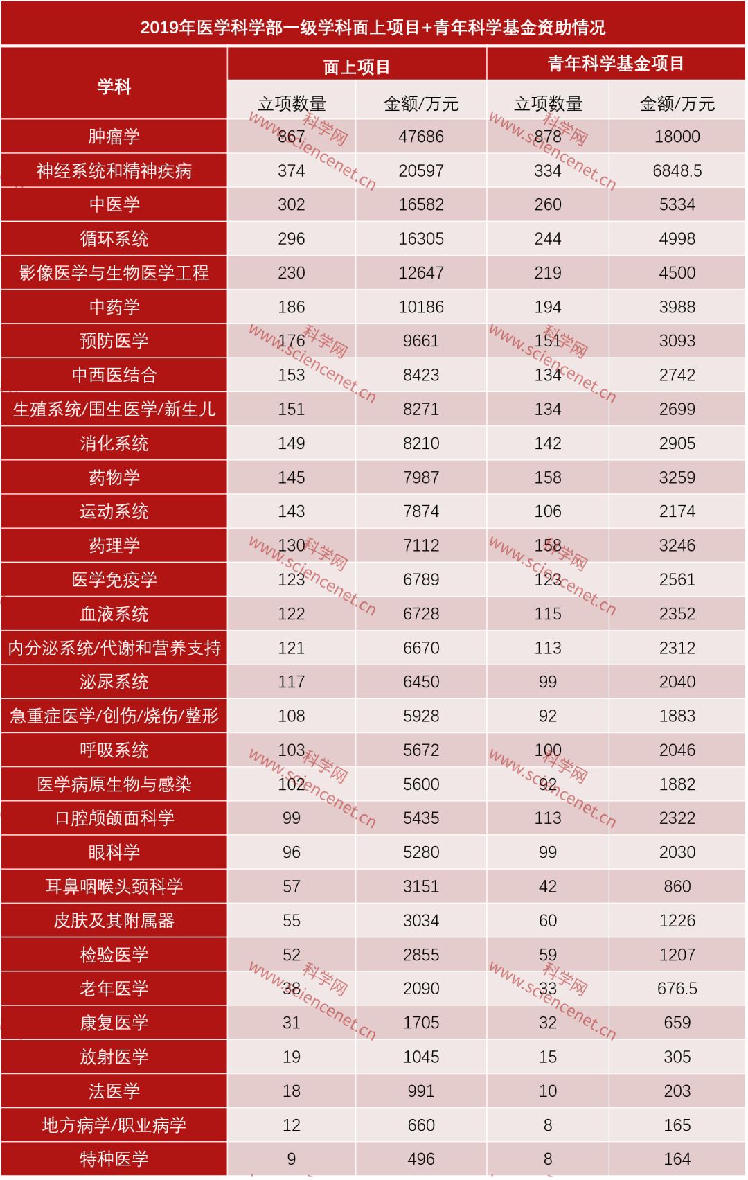 科学网整理了一下2019年医学科学部一级学科的面上项目、青年科学基金项目的资助情况。