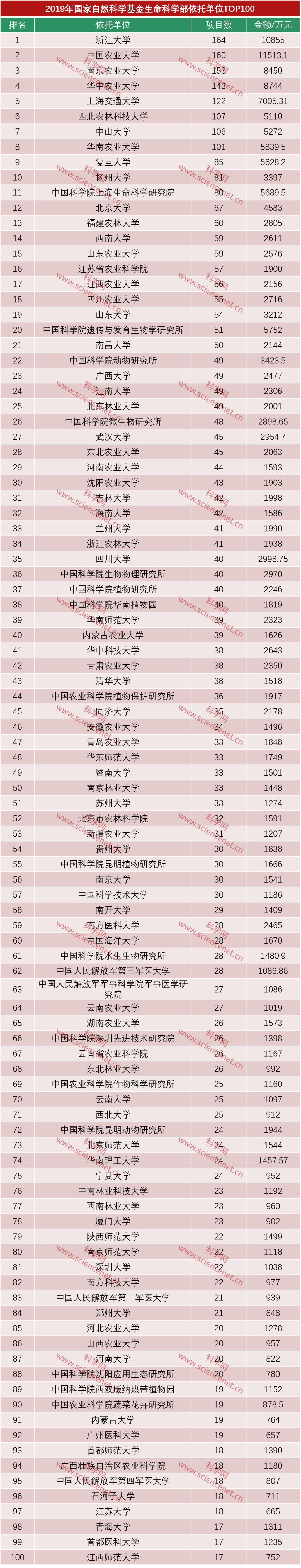 从统计数据来看,生命科学部依托单位获批项目数量排名前5名为:浙江大学164项,中国农业大学160项,南京农业大学153项,华中农业大学143项,上海交通大学122项。