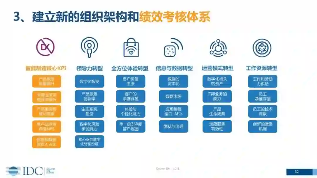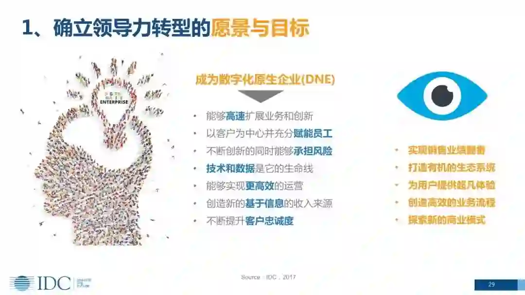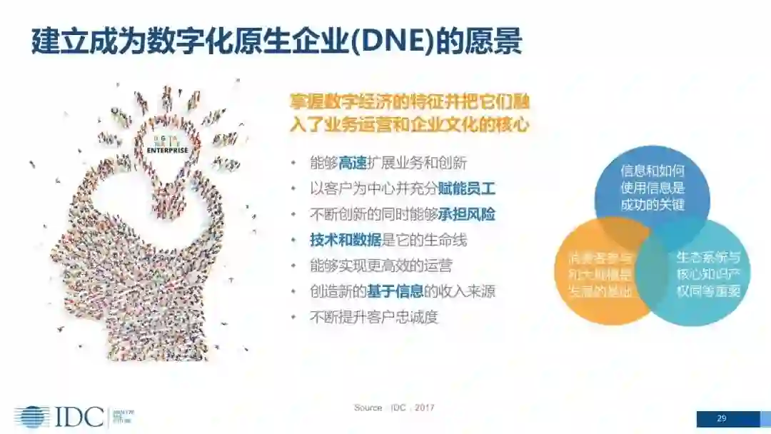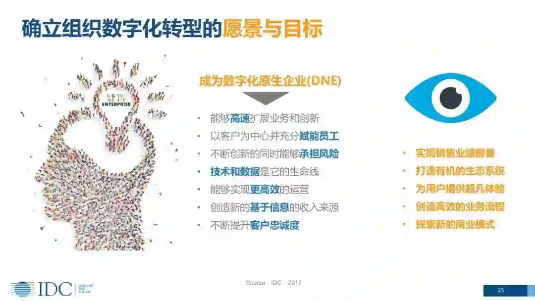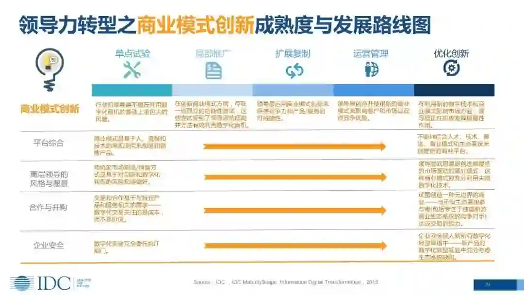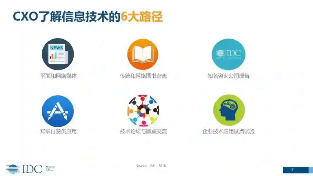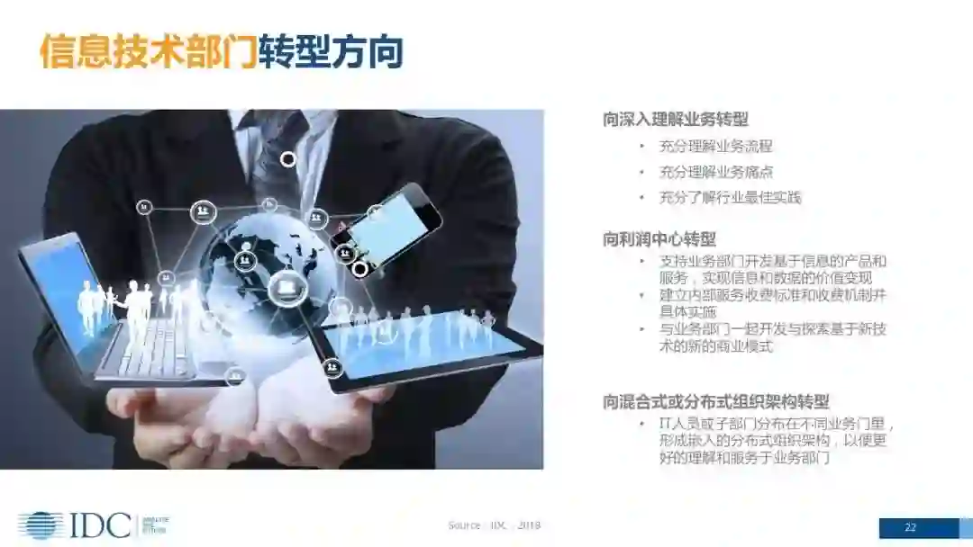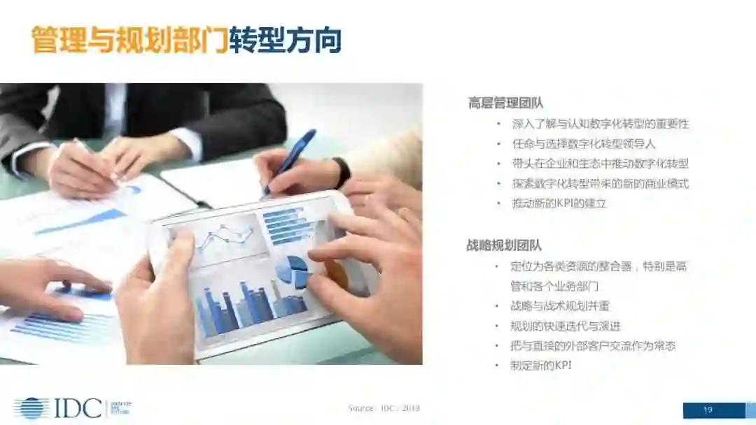 数字化转型是技术支持的业务转型,CXO变成技术型至关重要。IDC预计,到2020年,全球2000强公司中1/3 的CEO和COO等至少在技术领导领域有5年工作经验 。