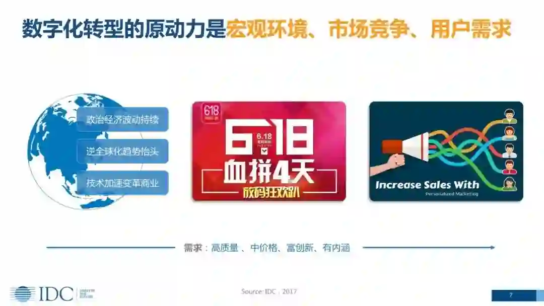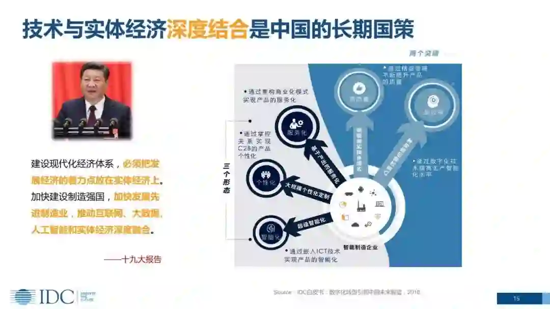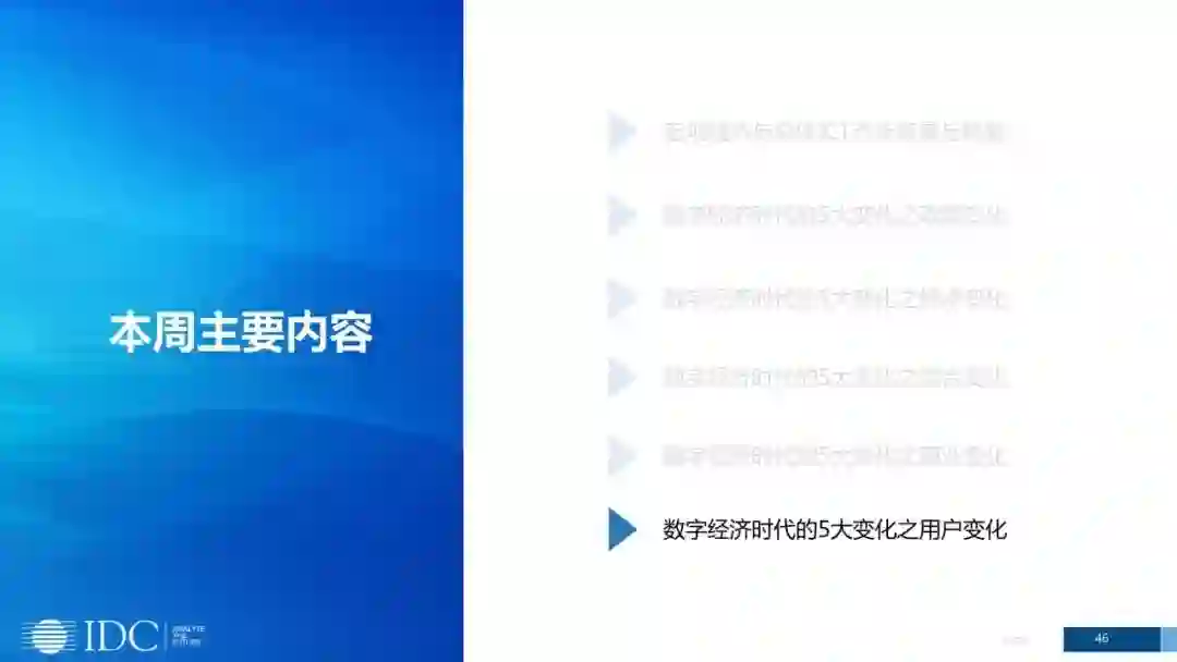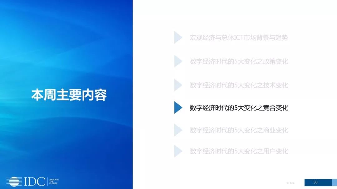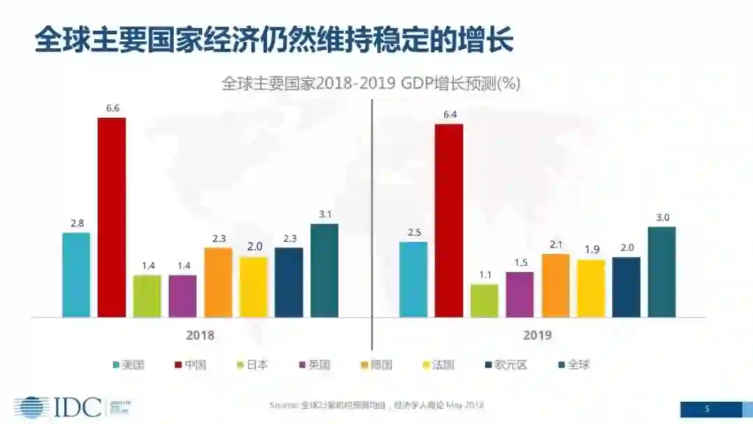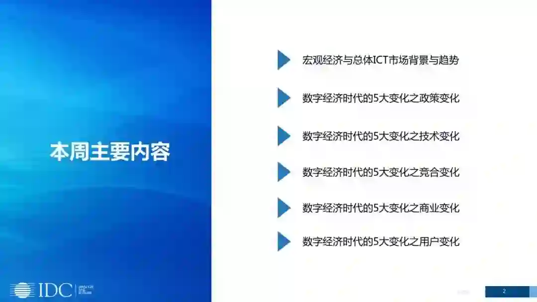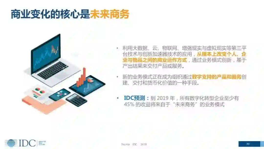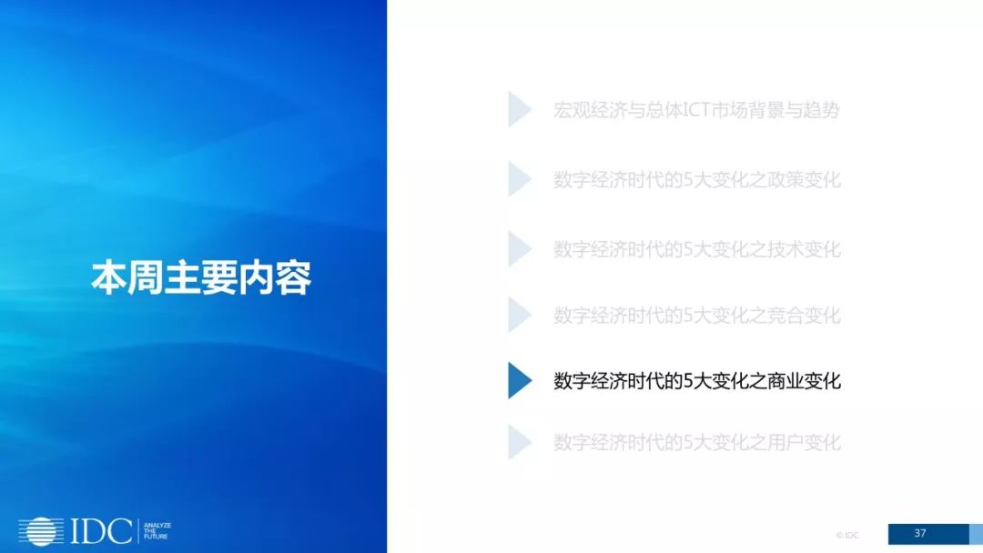 数字经济已经成为市场的主流。IDC预计,到2021年,全球50%的GDP都将是数字化的,中国数字经济的比例至少将达到55%。
