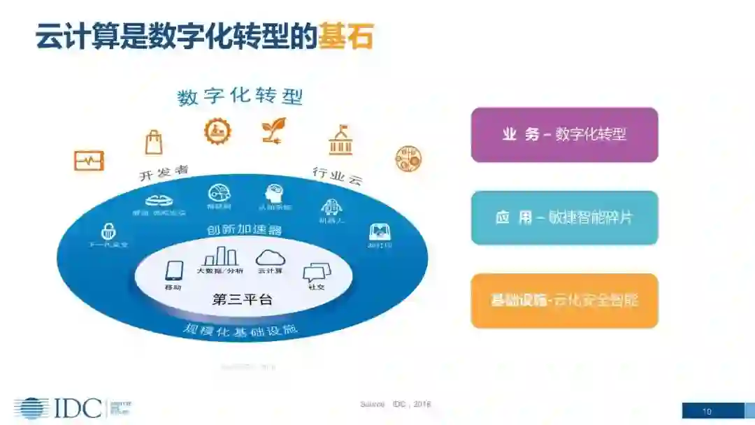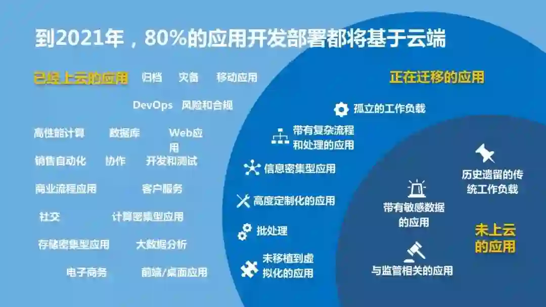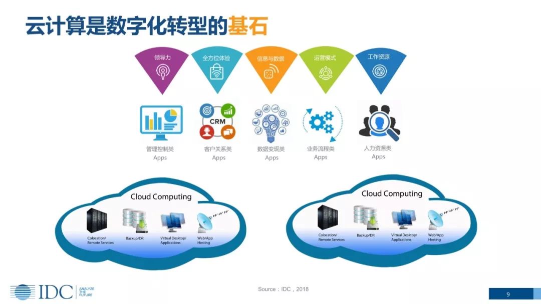 数字化转型是业务的转型,应用是数字化转型直接落地的体现,未来80%的应用开发部署都将基于云端,云计算是数字化转型的基石。
