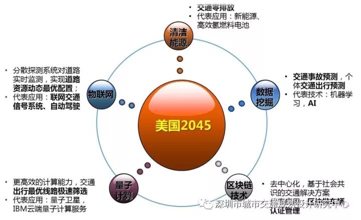美国《2016-2045年新兴科技趋势报告》对未来30年交通相关的新兴科技也进行了预测,物联网、清洁能源、数据挖掘、区块链、量子计算等技术将对传统交通模式进行洗牌,我们正处于第四次科技革命的风口浪尖。
