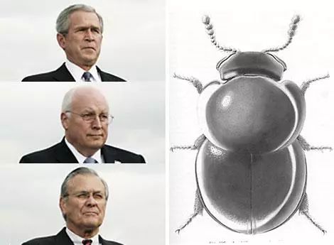 布什/切尼/拉姆斯菲尔德甲虫,Agathidium bushi , Agathidium cheneyi, Agathidium rumsfeldi ,三个同属的物种。