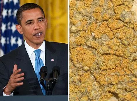 除了以上这俩之外,我们还有奥巴马地衣Caloplaca obamae (命名人是加州大学河畔分校的Kerry Knudsen,“向总统对科学和科学教育的支持致敬”)