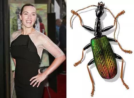 凯蒂温丝莱特甲虫。她是《泰坦尼克号》的女主, 不过Agra katewinsletae 倒是个不错的名字,因为这种甲虫也不会游泳(咦)。不管怎么说她俩都挺漂亮的。还有她是姓和名都进入了种加词,成就达成。