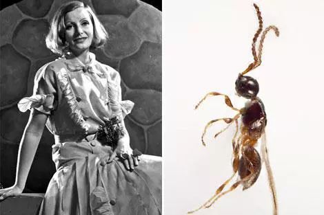 嘉宝黄蜂 Rostropria garbo 。这种独居的黄蜂让科学家们想起了性格孤僻终身未婚的葛丽泰·嘉宝,她在电影Grand Hotel里面的一句话至今让大家难以忘怀:"I want to be alone, I just want to be alone."