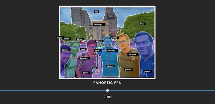 我们的系统擅长识别照片前景中的物品,如狗或球。但直到最近,他们一直在努力理解背景更大、包含更少的像素集合的照片。使用一种新的对象识别方法,即全景特征金字塔网络(panoptic feature pyramid network,即 Panoptic FPN),我们可以在一个统一的神经结构上同时执行实例分割任务(前台)和语义分割任务(后台)。