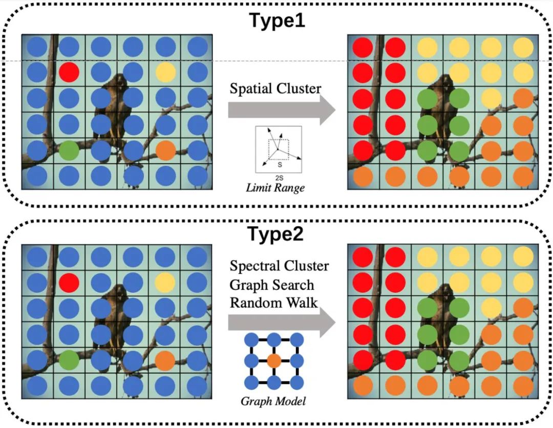 总的来看,在特定图像 Ii 上进行广义超像素分割的本质,可以看作在该图像域中的进行像素聚类任务 Ti。因此,对于包含 n 张图像的图像集 I={I1, I2, … In},在该图像集上的超像素分割任务可以看作任务集 T={T1, T2, … Tn}。在此条件下,我们可以将当前基于深度学习的超像素分割方法看作以下两种策略: