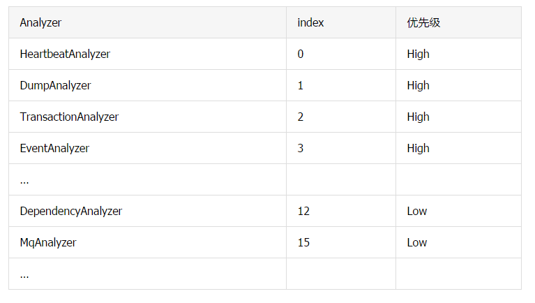 考虑到不同的 Analyzer 重要程度不同,我们的尽量保证核心 Analyzer 能正常工作,那些不太重要的 Analyzer 丢一点消息是可以接受的。于是我们给 Analyzer 引入了优先级概念,