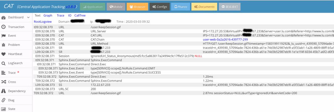 陆金所的后端应用监控也主要基于 CAT, 是在前几年的一个版本上做二次开发,增加了新的报表。各类架构中间件大量使用 CAT 埋点,并一直在丰富各类场景,在各类问题发现和问题定位发挥了很大作用。