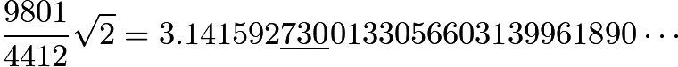 自学成才的天才拉马努金想出一个漂亮的 的近似公式. 这个式子里仅涉及 2 的平方根: