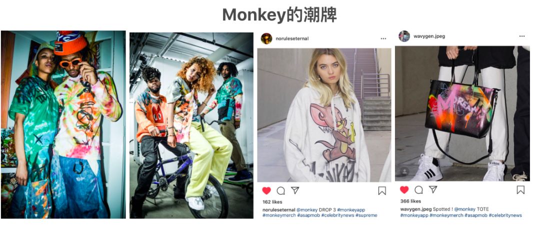 分享完 HOLLA 这边,我们来看看 Monkey ,Monkey 聚焦在北美地区的用户增长,通过一系列努力,这款产品在 2018 年初开始,在美国 iOS 榜单的排名一路提升,最高时达到美国 App 社交榜第五名,同时在榜上的例如 Facebook、WhatsApp 等都是已经运营了多年的产品。结合闭环增长的思路,Monkey 的美国团队探索了很多有趣的增长玩法,包括和独立设计师合作,推出限量联名潮牌,不能用钱买,只能通过 App 内的产生的「香蕉」货币兑换。用户只有触发 App 的特定场景才能获得「香蕉」货币。