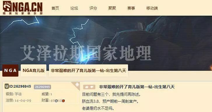 NGA全名“艾泽拉斯国家地理”,这一语出《魔兽争霸》,又因《魔兽世界》而为人熟知的论坛名,与“厨艺”“育儿”等版块名,是如此不搭。