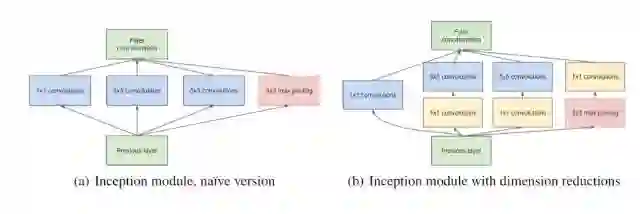 这种模型架构的信息密度更大了,这就带来了一个突出的问题:计算成本大大增加。不仅大型(比如 5×5)卷积过滤器的固有计算成本高,并排堆叠多个不同的过滤器更会极大增加每一层的特征映射的数量。而这种计算成本增长就成为了我们模型的致命瓶颈。