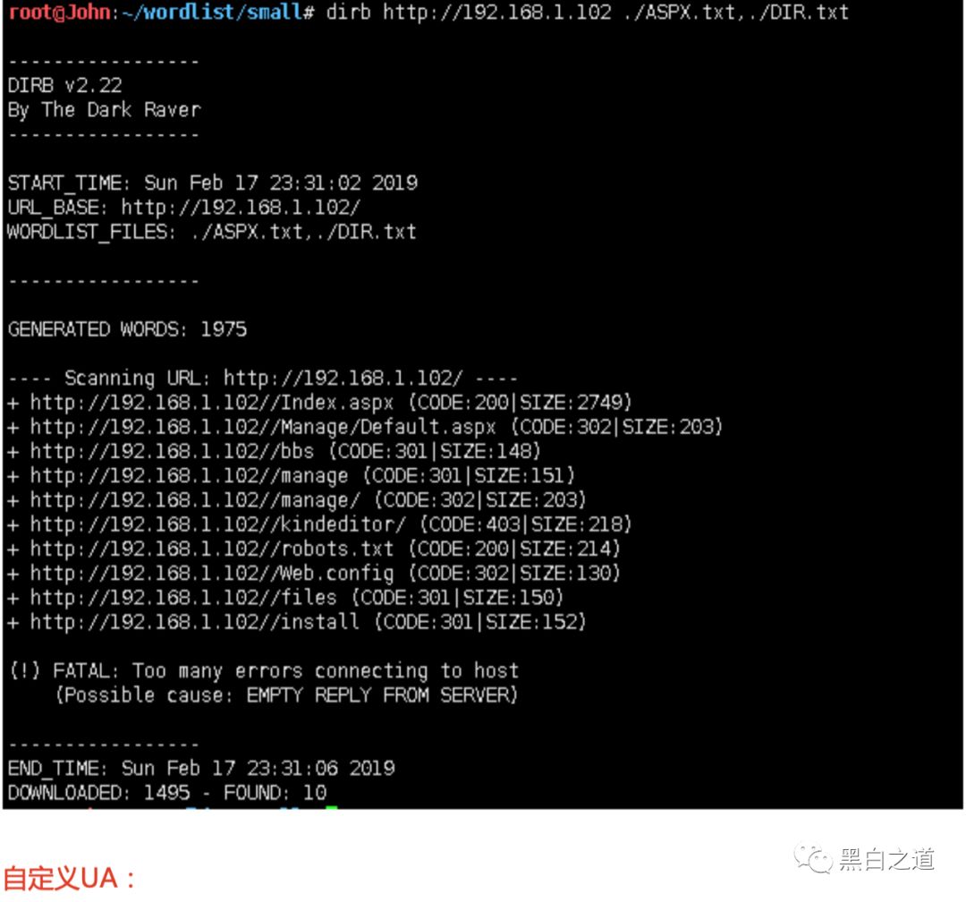 DIRB是一个基于命令行的工具,依据字典来爆破目标Web路径以及敏感文件,它支持自定义UA,cookie,忽略指定响应吗,支持代理扫描,自定义毫秒延迟,证书加载扫描等。是一款非常优秀的全方位的目录扫描工具。同样Kaili内置了dirb。
