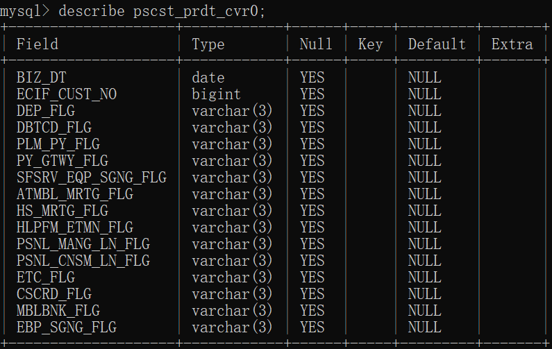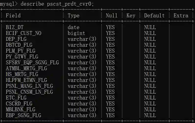 ECIF_CUST_NO:bigint 类型,用做分区键