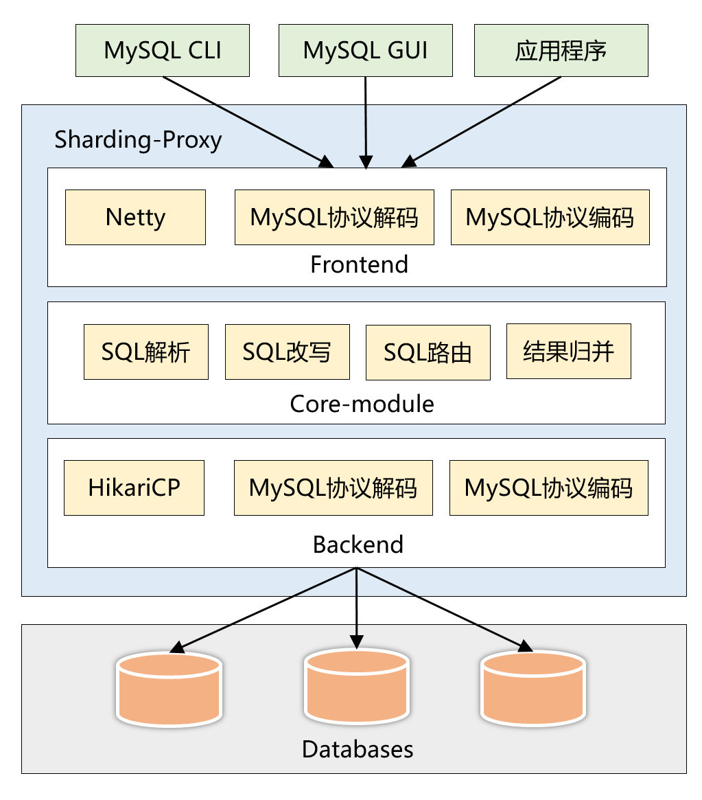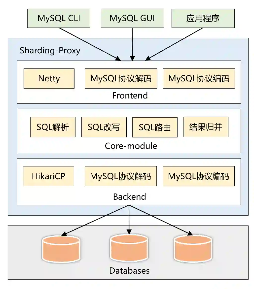 再来看下 ShardingProxy 的内部架构,后续源码分析时会涉及到此部分。