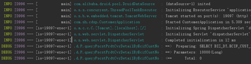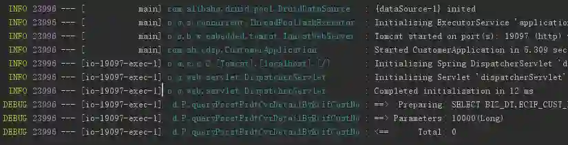 因为整个代码很简单,代码层面唯一有可能存在问题的是 Mybatis 这一层。为了确认这一点,我修改了 SpringBoot 的配置,将 MyBatis 的 debug 日志也打印了出来。再次发起请求后,能从控制台中看到以下详细日志: