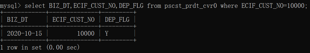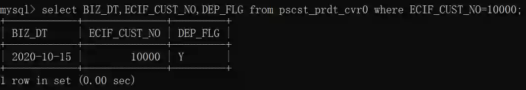 再说下遇到的问题。首先,往数据表中预先插入一条 ECIF_CUST_NO 等于 10000 的数据: