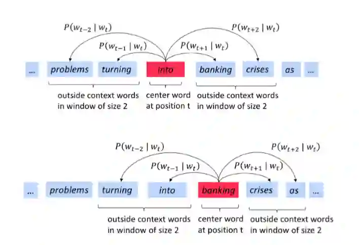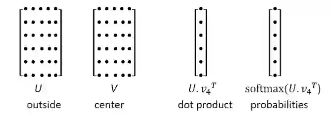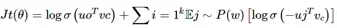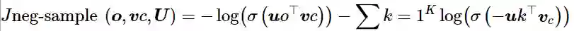 我们希望中⼼词与真实上下⽂单词的向量点积更⼤,中⼼词与随机单词的点积更⼩