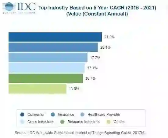 IDC行动与物联网副总Carrie MacGillivray指出,2021年超过55%的物联网计划支出金额将集中在软件与服务。2018年最积极投资物联网解决方案的产业分别是制造业、运输业以及公用事业(730亿美元)。IDC研究主任Marcus Torchia指出,2018年消费者物联网支出金额将达620亿美元、位居第四大产业类别,主要应用包括智能家庭、家庭自动化、保全以及智能家电。