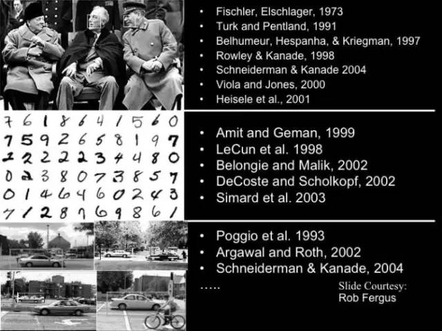 另外一个课题就是手写数字识别。手写数字看起来是很简单的事,但是对手写数字识别的研究引发出相当多的研究方法,给我们带来很多的成果,是一个很有意思的课题。此外的课题还有汽车的检测。我这里只是列了这几个。其实同时期还有指纹识别、文字识别OCR等、等。当时有的研究工作已经发展到了产品化的程度,包括OCR和指纹识别。
