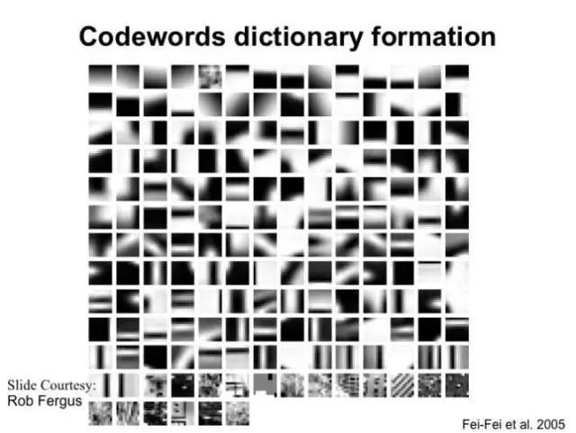 怎样把这种方法用于图像识别呢?在识别图像的时候,我们也可以把图像中的“高频词”放在一起来识别图像。这里的“词”是什么?直观地说就是小的图像块。比如我们要识别一张人脸,这样的图像上就会有像皮肤一样,或者像眼睛一样的图像块。而相对来说,如果识别自行车,就会出现和车有关的图像块,如:车座、车梁。这些图像块就是“词”。这样就可以采用“词袋”方法。实际上,图像中的词不是我们说的这么直观,而是下方这样的图像小块。它是很底层的图像块,非常小,3*3,5*5或者7*7大小的图像块。这样小的图像块不表达很抽象的语义。