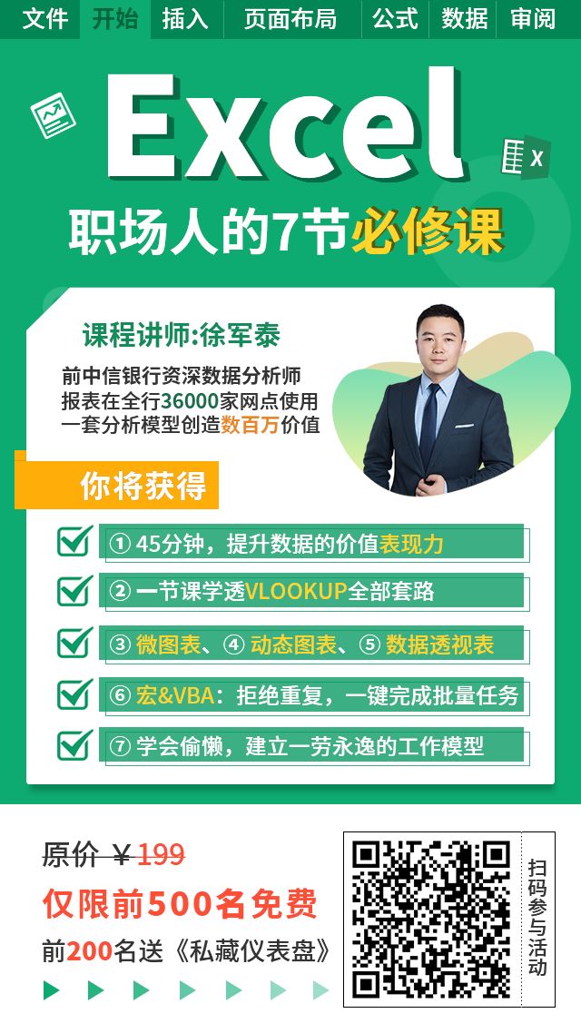 年终收官福利,前500名免费学习课程,200名还有精美Excel仪表盘赠送。